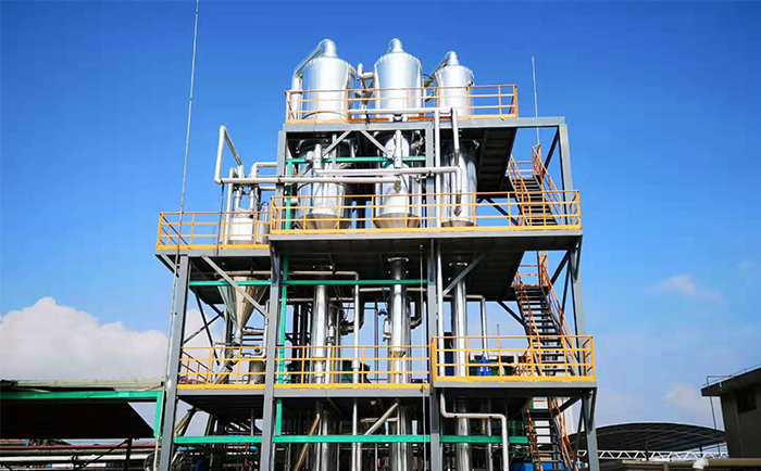 三效蒸發器主要由相互串聯的三組蒸發(fā)器(qì)、冷凝器 、鹽分離器和輔助設備等組成 。