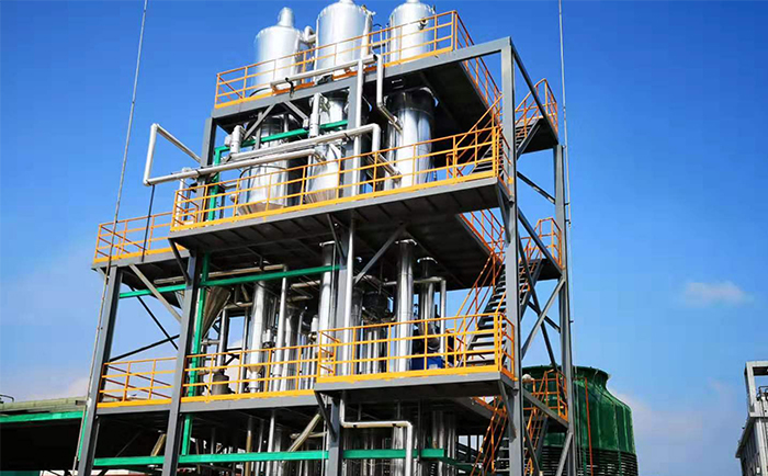 濃水經三效(xiào)蒸(zhēng)發器進行蒸發(fā)濃縮,蒸汽冷凝水流入回用(yòng)水池,蒸(zhēng)發(fā)濃縮後的濃縮液自流入濃縮(suō)液收(shōu)集(jí)池 ,進行外運處(chù)理 。
