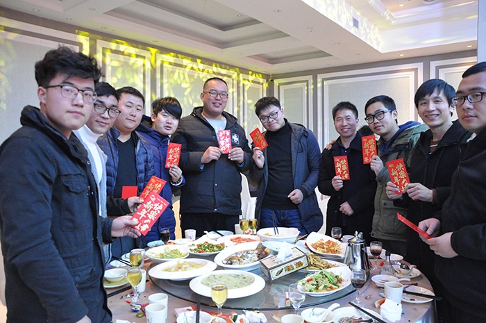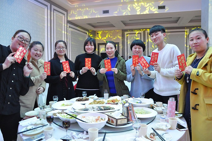 (董事長(zhǎng)為集團家人們一(yī)一(yī)送達新春(chūn)祝福並發放紅包(bāo))